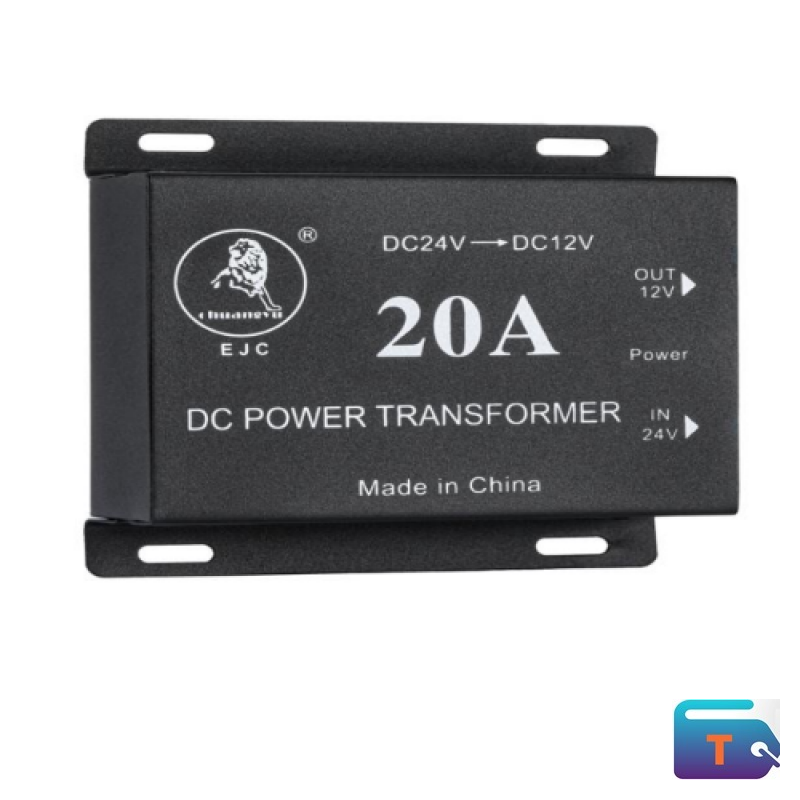 The EJC 20A DC Power Step-Down Converter is a professional-grade, high-efficiency voltage regulator designed to reliably reduce a 24V DC input to a stable 12V DC output. With a robust 20 Amp maximum current rating, this transformer is ideal for adapting 12V automotive, audio, and accessory equipment for use in vehicles and systems with a 24V primary power source, such as trucks, buses, marine vessels, and heavy-duty machinery. Encased in a durable, mountable chassis and manufactured in China, this unit ensures stable power delivery and protection for your sensitive 12V electronics.