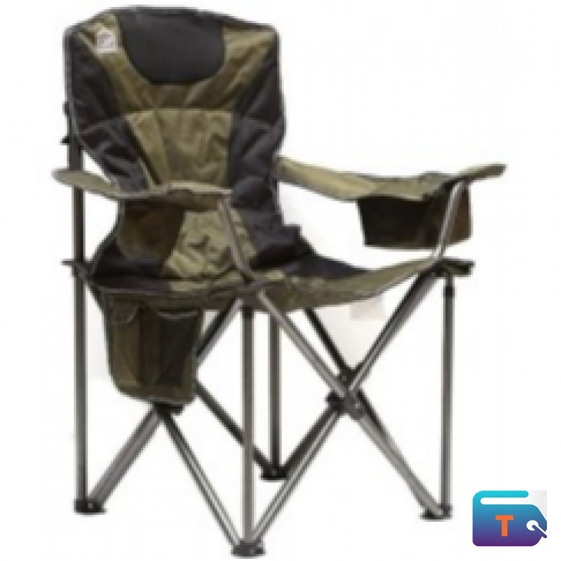 Enjoy the outdoors in comfort with this foldable high-back camping chair, built for durability and support. Featuring a reinforced metal frame with cross-braced legs, padded armrests, and a handy side pocket for gear, it’s the perfect companion for camping, tailgating, or weekend getaways. The dark green and black fabric offers a rugged look, while the compact foldable design ensures easy transport and storage. Wherever adventure takes you, this chair delivers reliable relaxation.