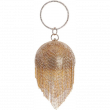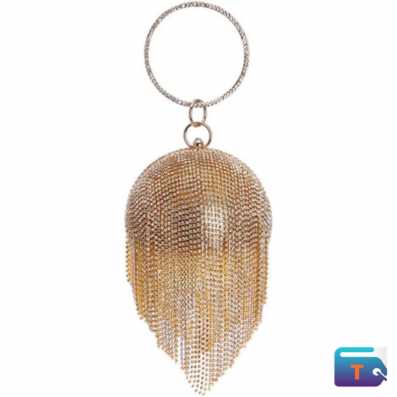 Design: fashionable round clutch is full of shining rhinestone, dazzling rhinestone tassels drooping naturally. A slim metal detachable chain for you make it can be used as many different styles, like a clutch, cross-boy bag, casual bags or shoulder bag. Come with a ring handle for an elegant tote bag.