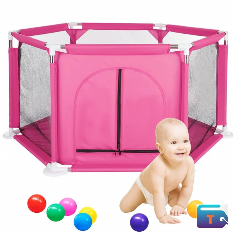 The Hexagonal Foldable Baby Playpen Fence Activity Center Ball Pit (Pink) is a multifunctional play yard designed to provide infants and toddlers with a safe, spacious, and engaging environment. With its hexagonal shape, foldable design, and cheerful pink finish, it doubles as a ball pit and activity center for both indoor and outdoor use.