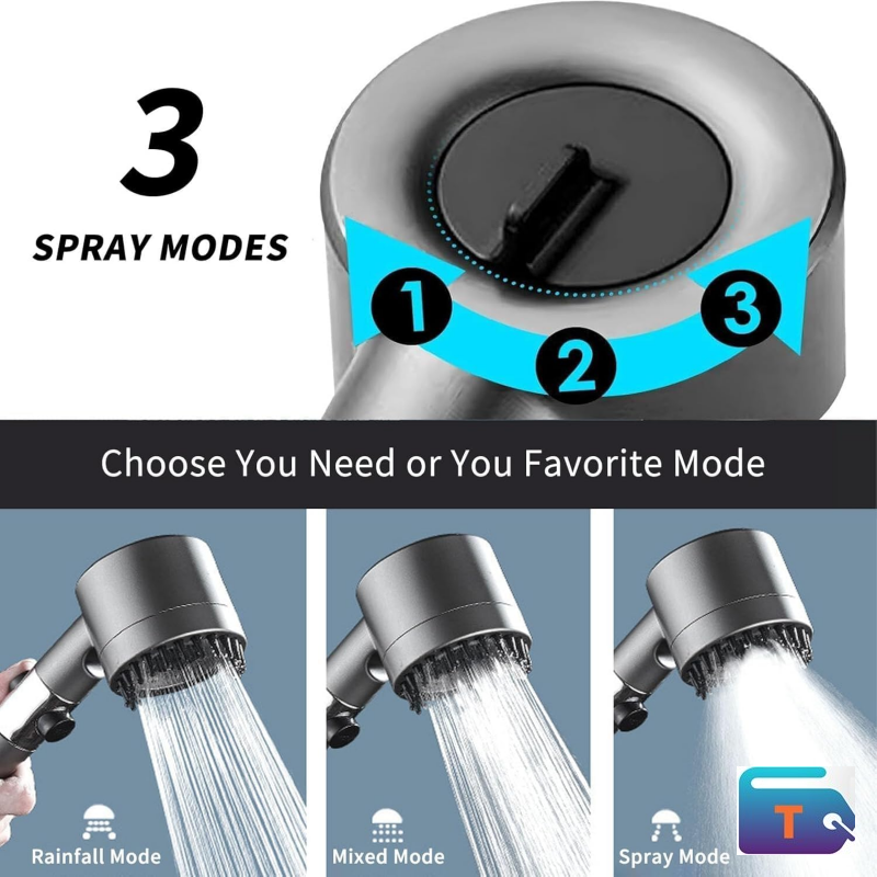 Includes rainfall mode, power spray, massage mode, and pause mode for water saving. Simple and practical design without unnecessary settings.