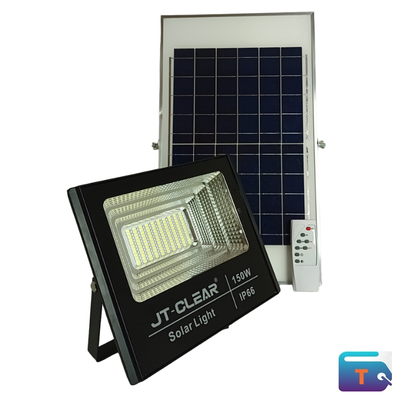 The JT-CLEAR 150W Solar Flood Light is a high-power outdoor lighting solution designed for large-area illumination and security. Featuring a high-brightness LED floodlight, an external high-conversion solar panel, and remote control operation, it delivers reliable, energy-efficient lighting without reliance on grid electricity. Its durable, weather-resistant construction ensures consistent performance in demanding outdoor environments.