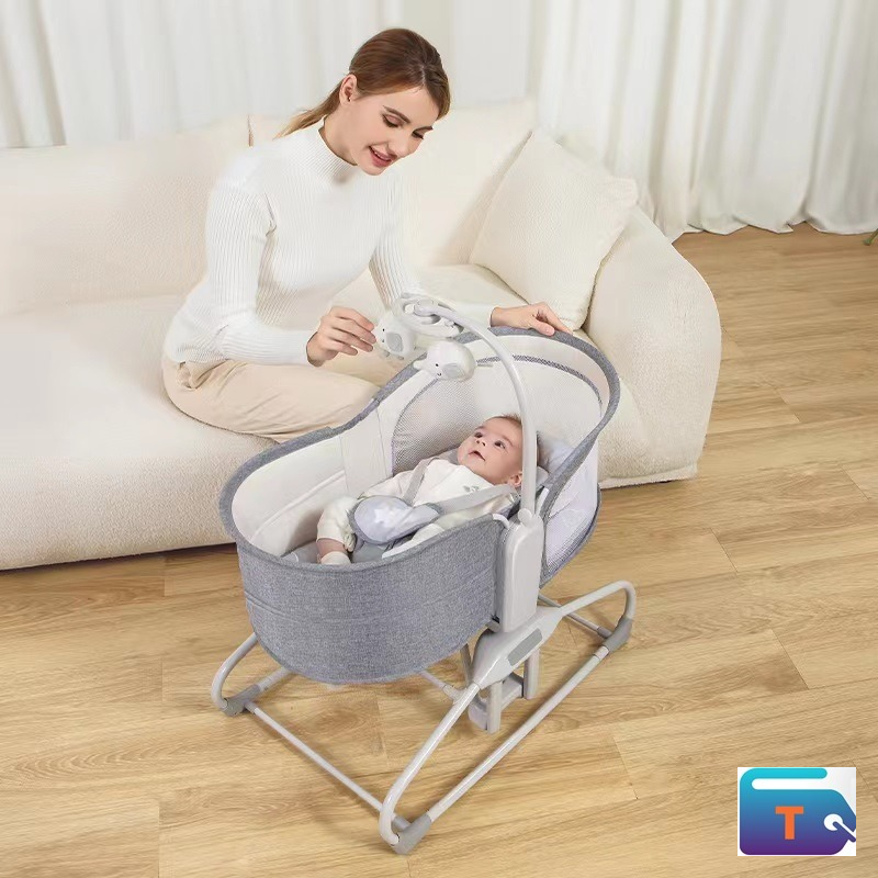 • It has an electric rocking feature with multiple speeds to soothe a baby.