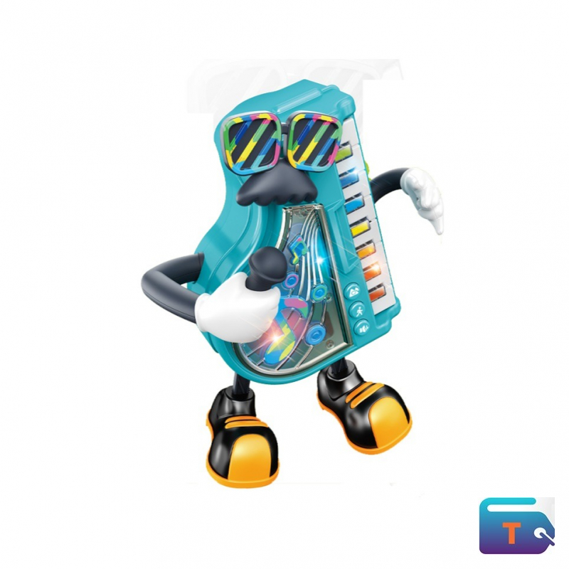 Mr. Nico Singing and Dancing Piano Toy .This is an interactive musical toy for children that combines a piano keyboard with a dancing robot character. The character, often referred to as "Mr. Nico," is a blue robot with sunglasses that plays a keyboard.