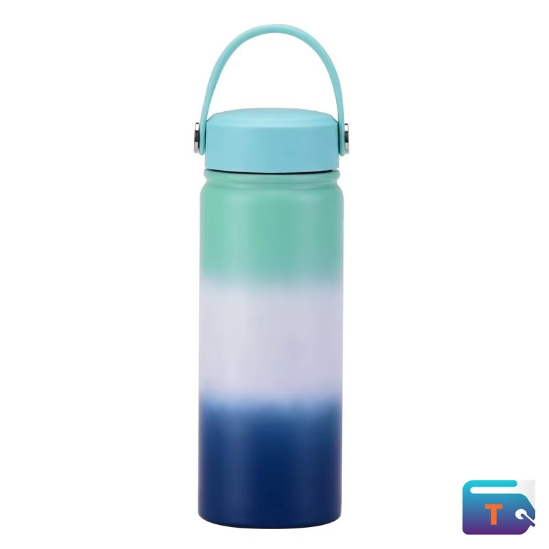 Hydrate in style with this 500ml gradient reusable water bottle, blending deep blue, white, and greenish-blue tones for a fresh, modern look. Designed for both aesthetics and practicality, it features a sturdy light blue lid with a metal-riveted handle for easy carrying. The compact size and durable build make it ideal for gym, school, travel, or daily use. With reusable construction and a sleek design, it’s a smart choice for eco-conscious hydration.