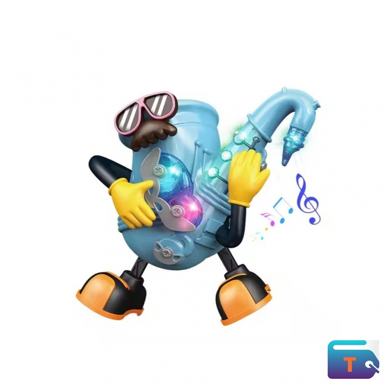 This is a  musical cartoon robot toys designed for children. This electronic toy features a character playing an instrument, such as a saxophone or guitar, and are known for singing, dancing, and having light effects.