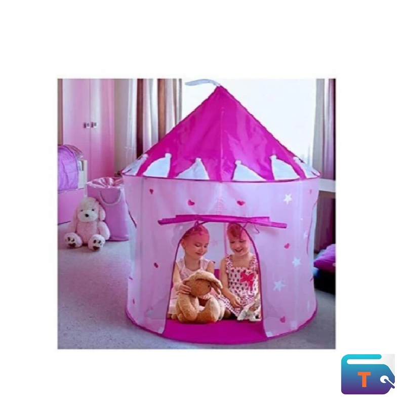 This is a pink princess castle play tent for children. It is designed to be a pop-up playhouse or a ball pit, suitable for both indoor and outdoor use. The tent is  made of durable, non-toxic, and easy-to-clean materials like polyester or oxford fabric, with a frame of sturdy poles for stability.