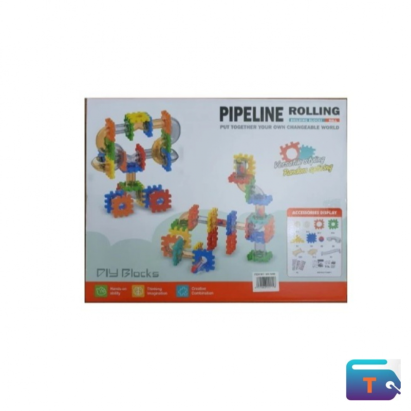 This is a Pipeline Rolling Ball Building Block set. This is a type of construction toy that allows children to build their own marble run or pipeline for small balls to travel through. The set contains 49 pieces, including colorful interlocking tiles and various pipes. This is considered educational, as is helps children develop skills such as hand-eye coordination, fine motor skills, and problem-solving.