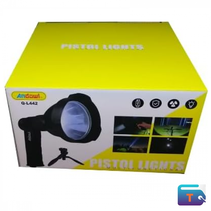 The Andowl Q-L442 is a high-powered LED flashlight built for outdoor, tactical, and emergency use. Featuring a unique pistol-style grip and tripod compatibility, it offers stable handling and hands-free illumination. Engineered for long-range performance, energy efficiency, and rugged durability, it’s ideal for camping, security patrols, and nighttime exploration.