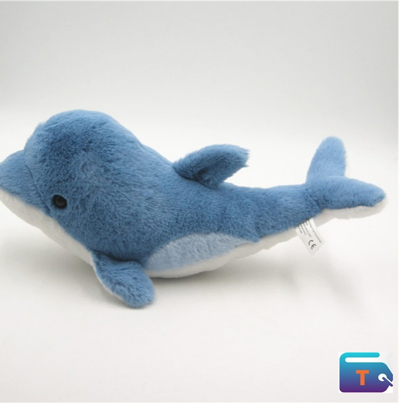 • It is a soft, stuffed toy designed to look like a dolphin.