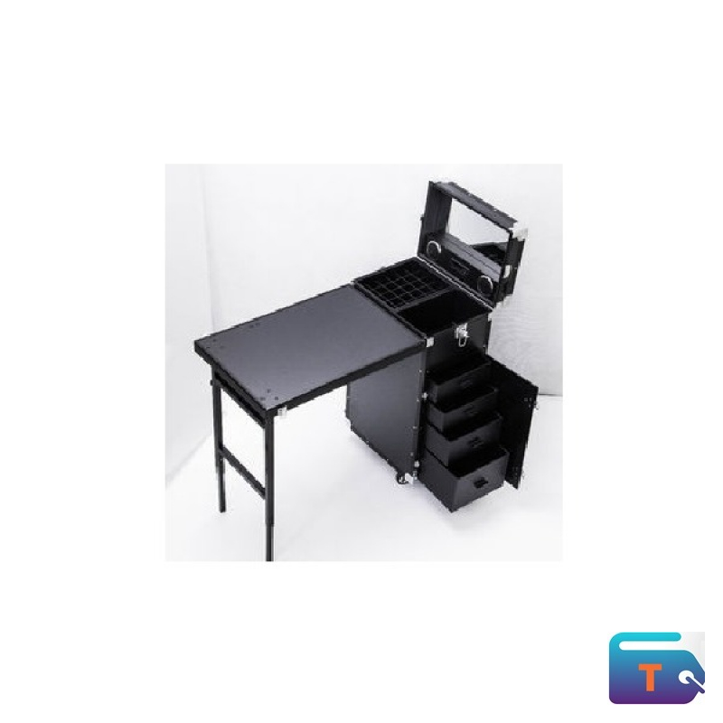 Experience professional-grade organization with this portable black makeup station, designed for beauty experts who need mobility and functionality. Featuring a fold-out table, illuminated mirror, grid organizer, and multiple drawers, this unit transforms any space into a fully equipped beauty workstation. Ideal for makeup artists, stylists, and on-the-go professionals, it combines sleek design with practical storage.