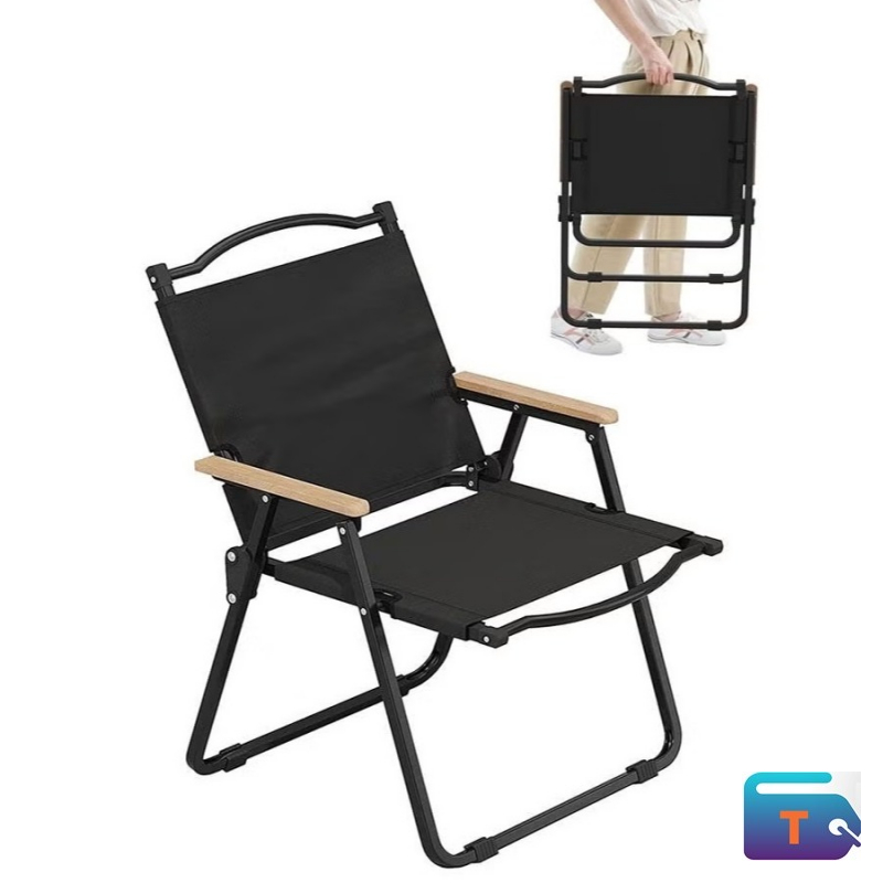 This  is a portable, black folding armchair, widely available as a camping or outdoor chair. It is designed for compact storage and easy transport, making it suitable for various outdoor events, picnics, or camping trips.