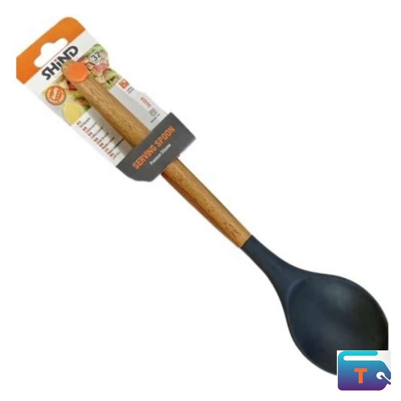 This serving spoon is crafted for everyday kitchen use, combining style and functionality. The deep scoop head is ideal for serving soups, stews, vegetables, and more, while the smooth wooden handle offers a comfortable, heat-resistant grip. Its sleek black head is safe for non-stick cookware and adds a modern touch to your utensil set.