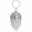 Design: fashionable round clutch is full of shining rhinestone, dazzling rhinestone tassels drooping naturally. A slim metal detachable chain for you make it can be used as many different styles, like a clutch, cross-boy bag, casual bags or shoulder bag. Come with a ring handle for an elegant tote bag.