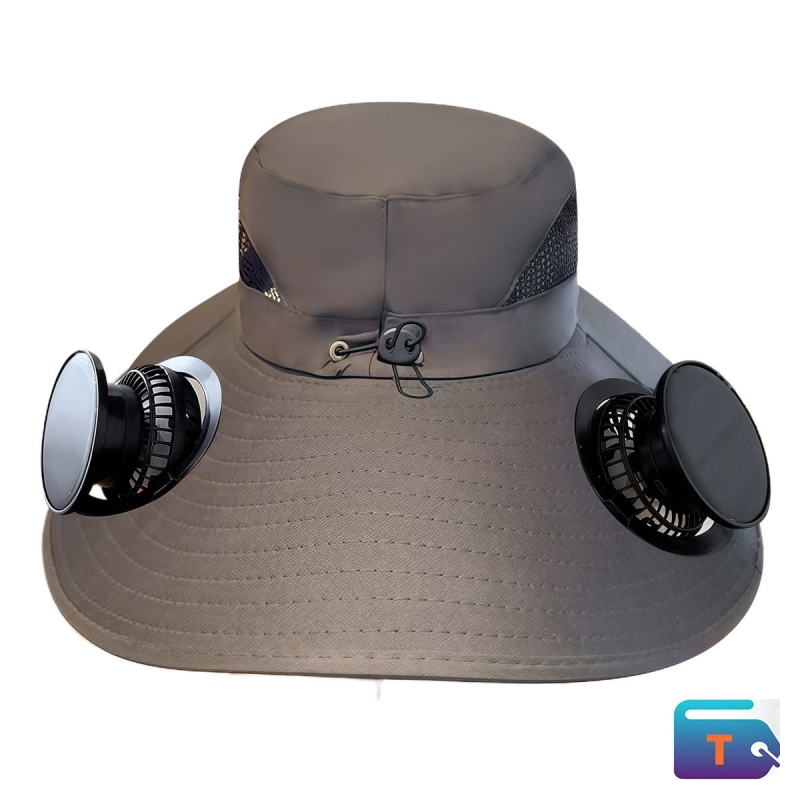 Sun Shade Hat with Solar Powered Fan - Brown