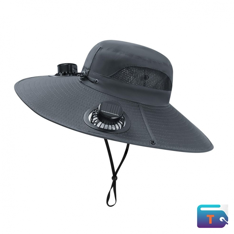 Sun Shade Hat with Solar Powered Fan - Grey