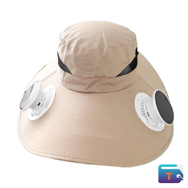 Sun Shade Hat with Solar Powered Fan - Khaki