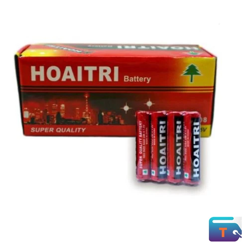The HOAITRI Super Quality AA battery pack delivers dependable 1.5V power for everyday devices like remote controls, flashlights, clocks, and toys. Packaged in a vibrant red box with bold branding and a city skyline motif, these batteries are designed for consistent performance in low to moderate drain applications. Each cell is labeled with "SUPER QUALITY BATTERY,” reflecting the brand’s focus on reliability and shelf-life. Ideal for households and retailers seeking affordable, long-lasting energy solutions.