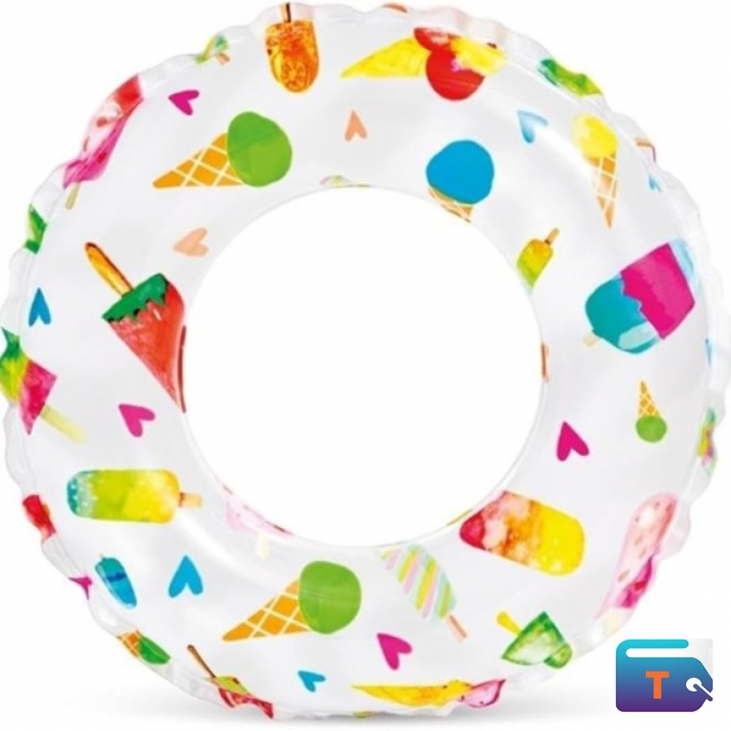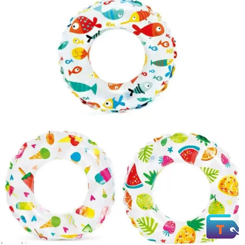 • Design: The swim ring has a lively, colorful pattern, often featuring fish and other ocean-themed designs. It also has a clear top section.