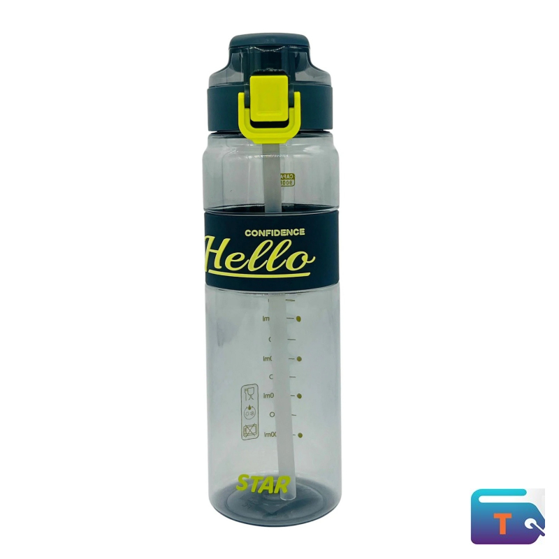 Stay motivated and hydrated with this 900ml transparent water bottle featuring bold black and yellow accents and dual measurement markings in milliliters and ounces. The flip-top lid includes a secure yellow latch for spill-free sipping, while the printed scale helps monitor intake throughout the day. With motivational text and a sturdy build, this bottle is ideal for gym, school, or outdoor use. Durable, reusable, and visually striking — a practical hydration companion.