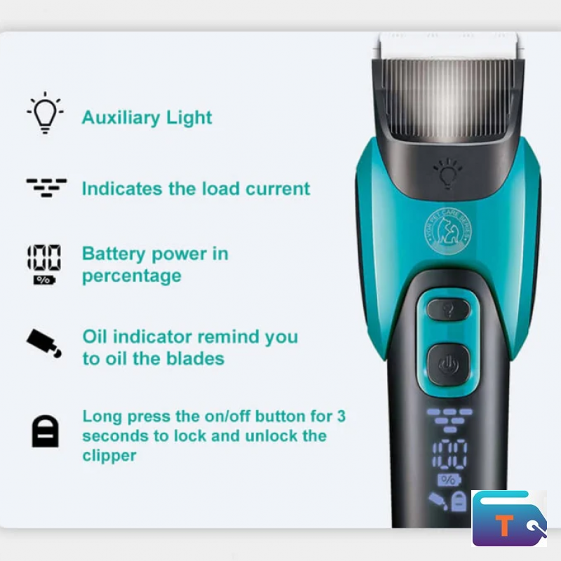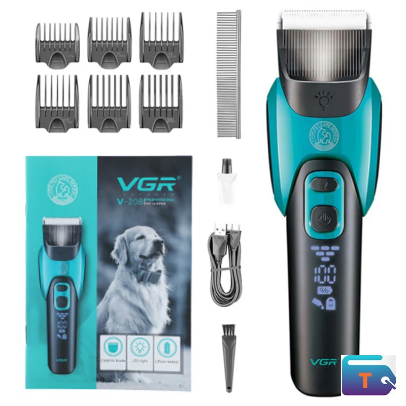 7. Accessories: 6 guide combs, cleaning brush, pet comb, USB charging cable, user manual